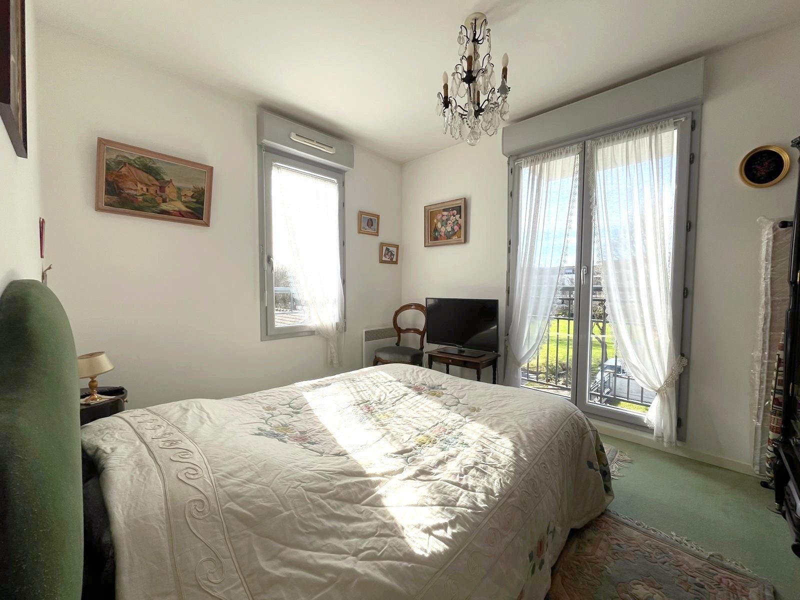L’espace nuit, bien séparé, offre deux chambres confortables, une salle de bains fonctionnelle et un WC indépendant.Pour votre confort quotidien, vous bénéficiez également de deux places de parking en sous-sol, un véritable atout dans le secteur.